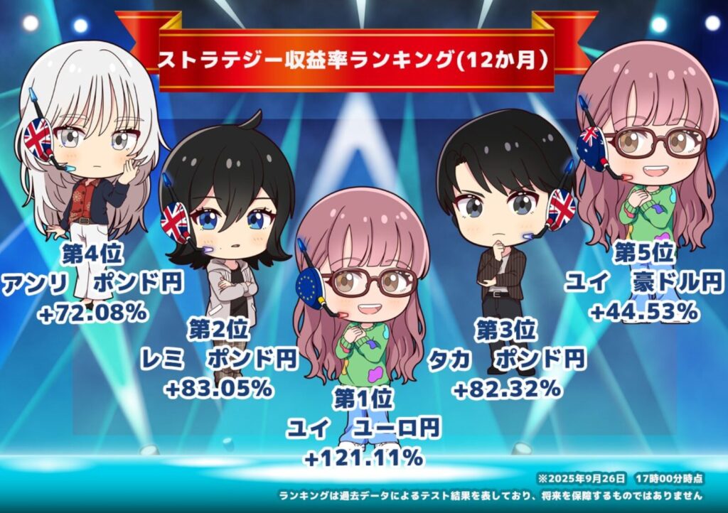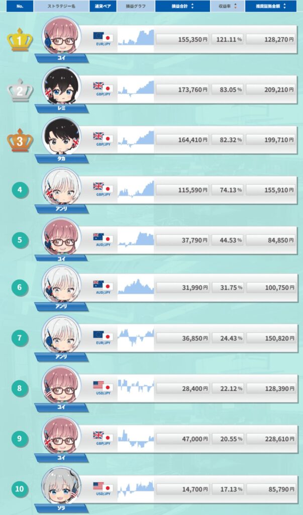 さらに、勝率や損益データも見える化されているので、自分に合った戦略を選びやすいのが特長です。